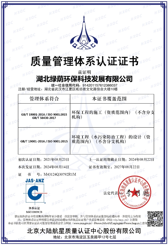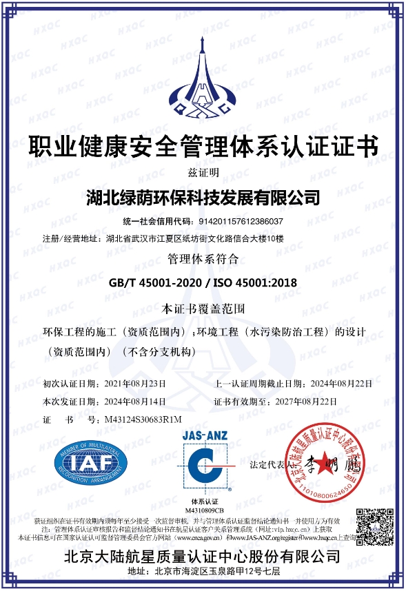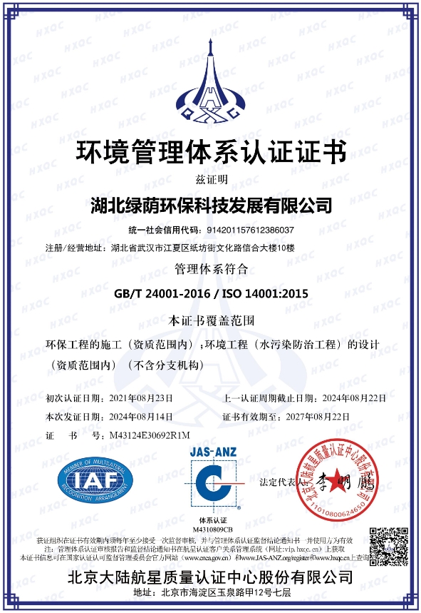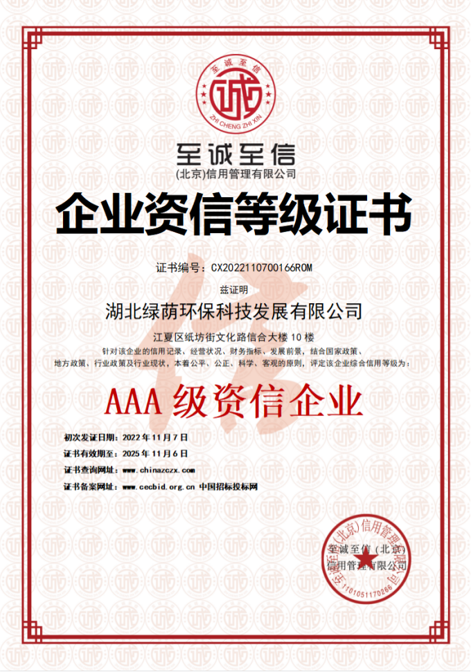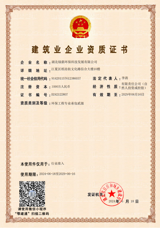 營業(yè)執(zhí)照 開戶許可證 安全生產(chǎn)許可證 工程設(shè)計資質(zhì)證書 建筑業(yè)企業(yè)資質(zhì)證書 產(chǎn)業(yè)協(xié)會會員證 湖北省環(huán)境污染治理證書(環(huán)境修復(fù)工程乙級) 污染治理設(shè)施運行服務(wù)能力評價證書(生活污水處理二級) 污染治理設(shè)施運行服務(wù)能力評價證書(工業(yè)廢水處理二級) 質(zhì)量管理體系認證證書 職業(yè)健康安全管理體系認證證書 環(huán)境管理體系認證證書 AAA企業(yè)信用等級證書 湖北省專精特新中小企業(yè)
